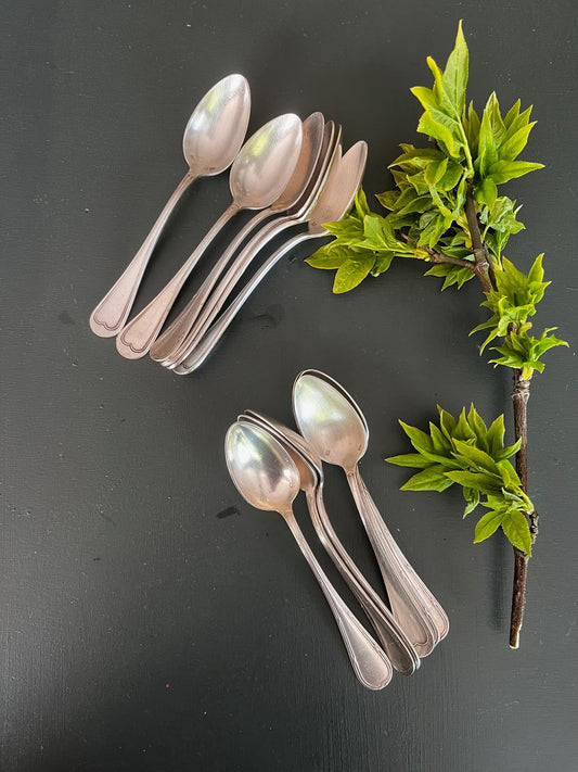 Lot de 6 petites cuillères anciennes en métal argenté – Argenterie vintage dépareillée