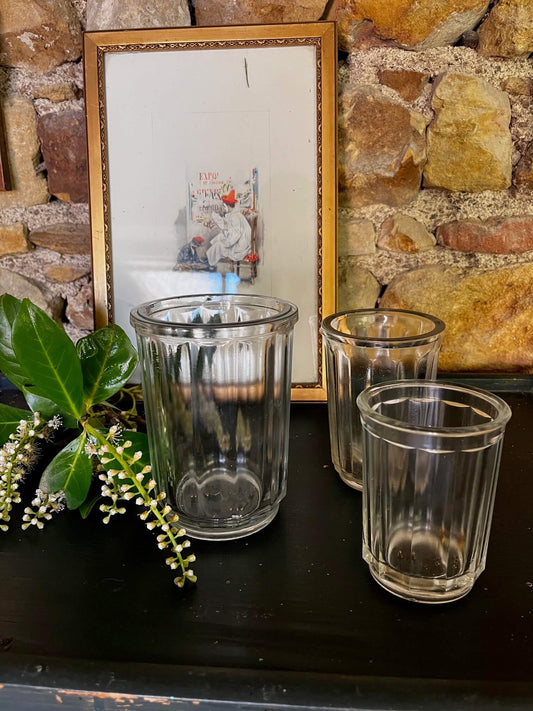 Lot de 3 pots à confiture anciens en verre – déco vintage & rangeme