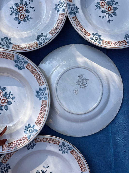 Lot de 7 assiettes Longwy Madras – faïence terre de fer vintage