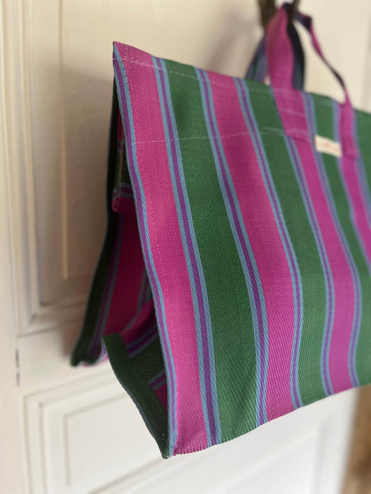 Cabas rayé vert et rose en fibre recyclée – Sac cabas été Alfred