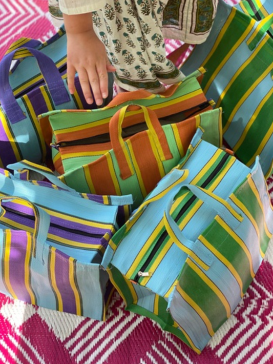 Cabas Cool XL – Grand cabas rayé en fibre recyclée pour voyage et rangement