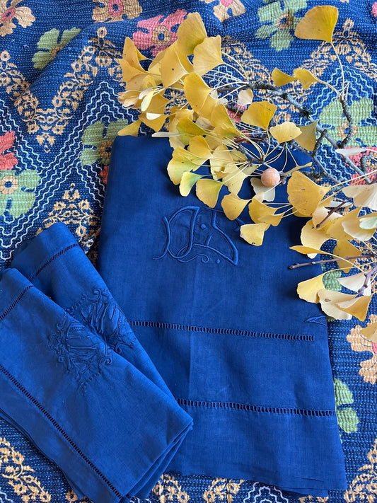 Lot de 6 sets de table Kantha bleus – Fait main, déco bohème chic