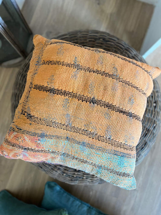 Coussin Kantha carré 50x50 – Décoration bohème artisanale