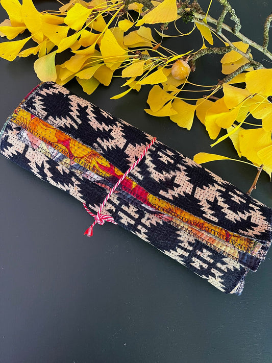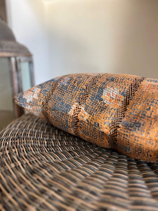 Coussin Kantha rectangulaire 50x30 – Coussin bohème artisanal en coton recyclé