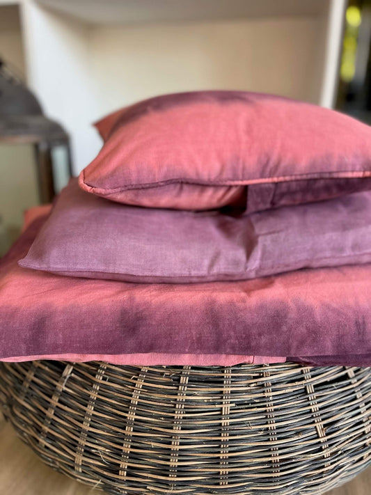 Housse de Coussin Tie Dye Lie de Vin 50x70 cm – Lin Naturel, Déco Bohème Chic, Artisanale
