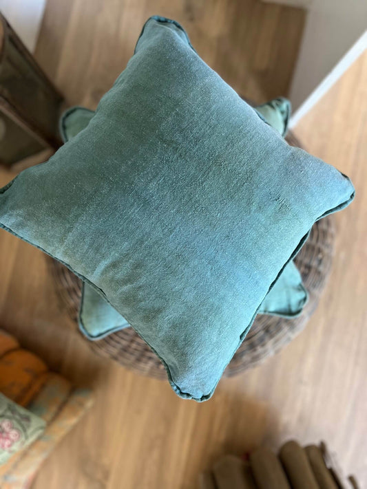 Housse de Coussin Turquoise 40x40 cm – Lin Tie Dye Artisanale & Durable