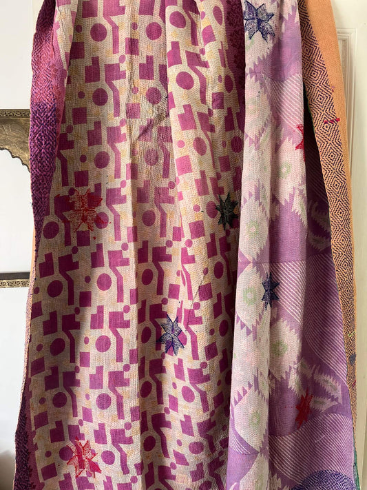 Kantha "Patchwork Étoilé" – Couvre-lit en Coton – Fabrication Artisanale