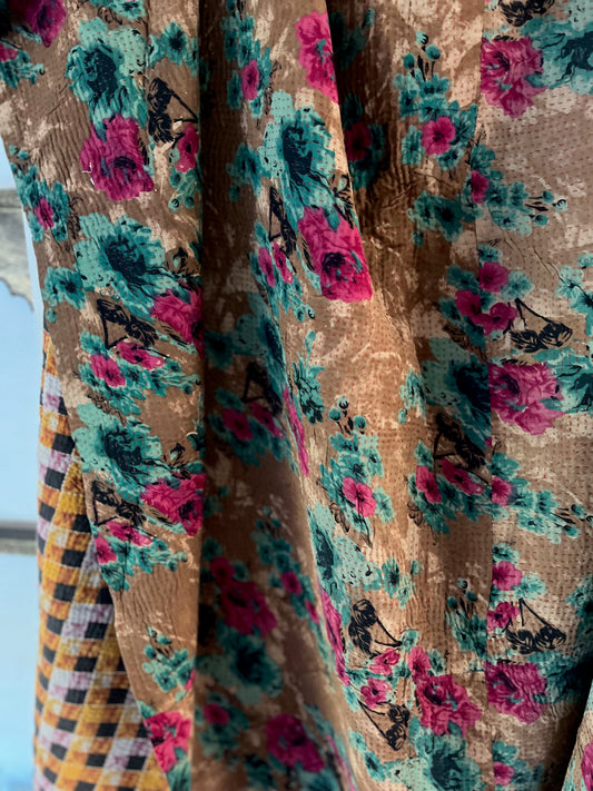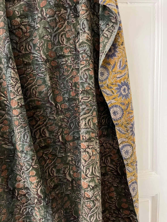 Kantha Indien Fait Main – Couvre-lit Réversible Fleuri en Coton 158x190
