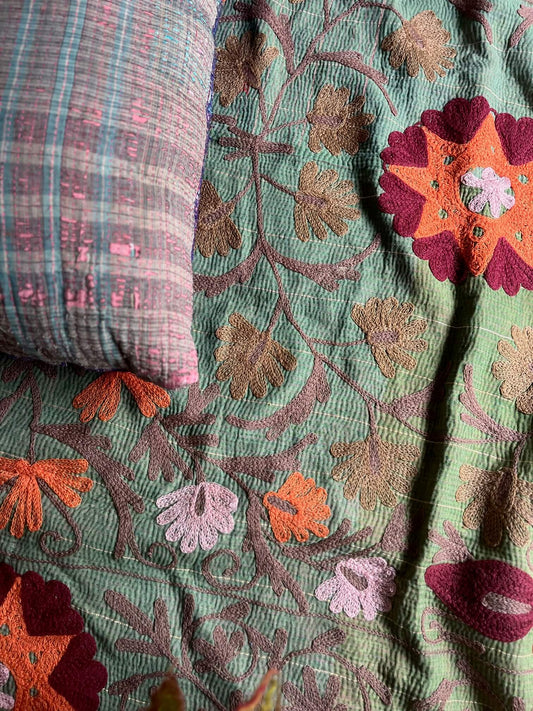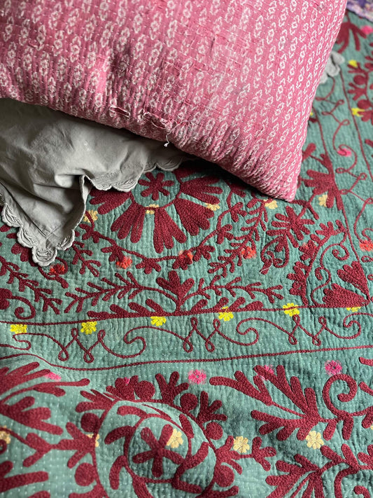 Suzani Indien Fait Main – Couvre-lit Réversible en Coton 140 x 210Suzani Indien Fait Main – Couvre-Lit Réversible en Coton 140x210 | Décoration Bohème Chic