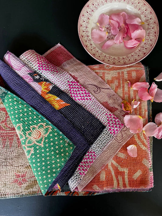 Lot de 6 sets de table colorés en Kantha – Fait main, déco bohème chic