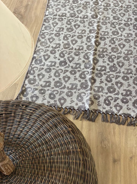 Tapis beige en coton imprimé à la main – Tapis artisanal 74x157 cm