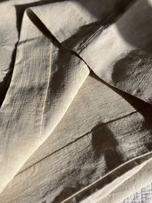 Antique Hemp Bed Sheet with Hand-Embroidered LB Monogram – One-of-a-Kind Piece