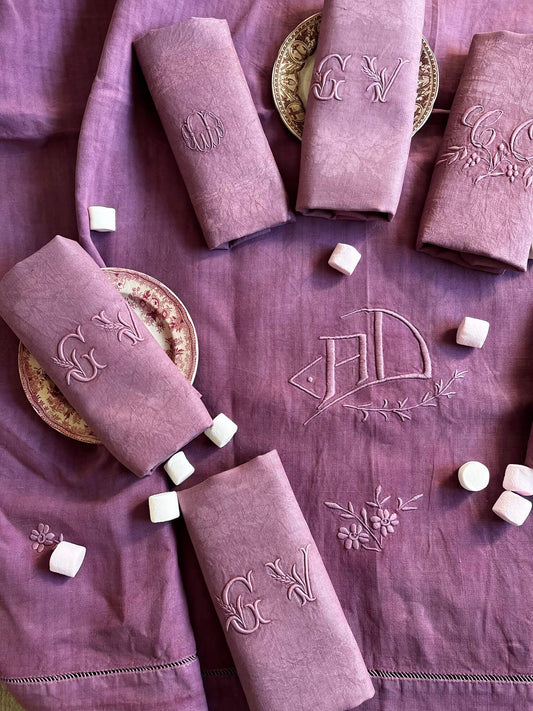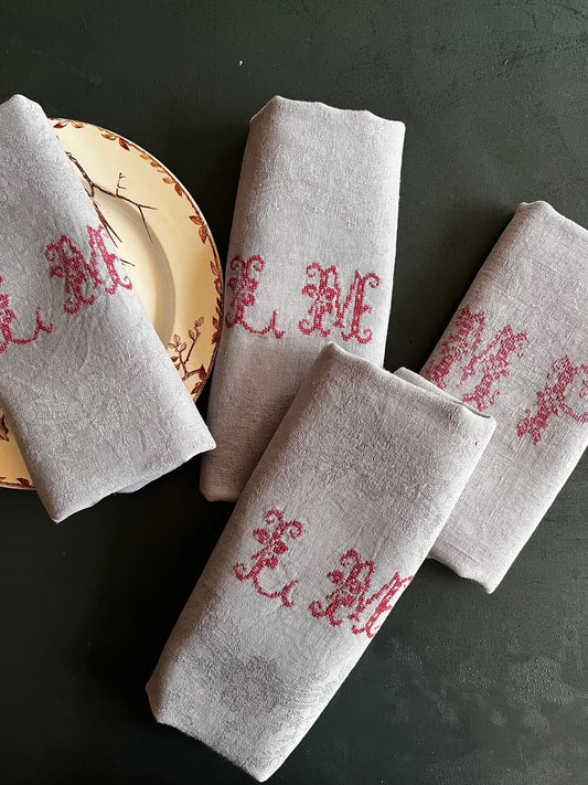 Antique Monogrammed Napkins Dyed Wine Lees – Vintage Damask Cotton
