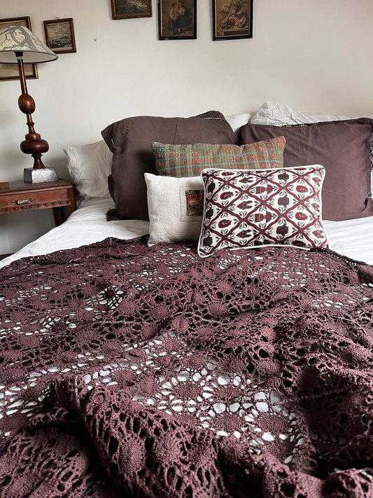 Vintage Crochet Bedspread in Chocolate Brown – Antique Textile