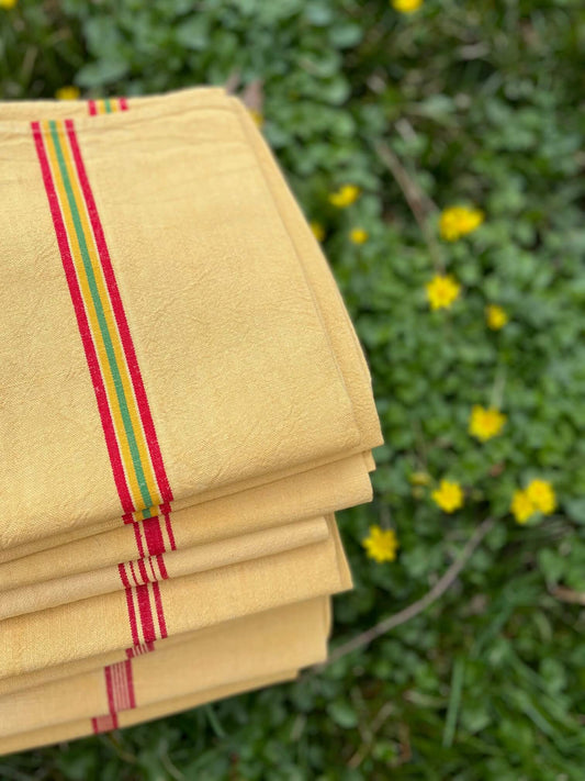 Antique Hand-Dyed Yellow Napkins – Monogrammed Damask Cotton