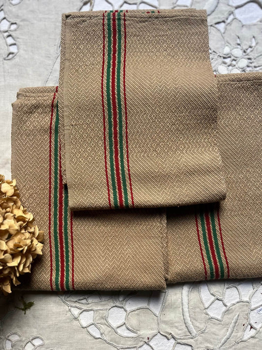 Antique Linen Napkins Hand-Dyed with Avocado – 1950s Hand-Embroidered Madagascar Table Linen