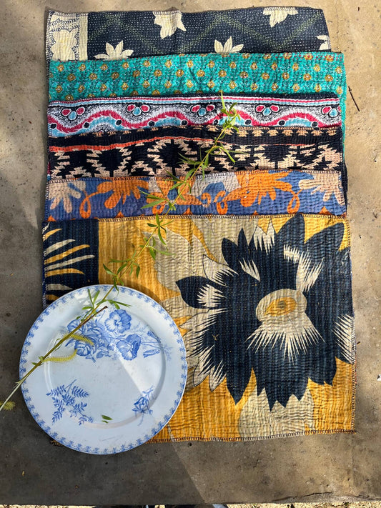 Set of 6 Blue Kantha Placemats – Handmade Boho Chic Table Linen